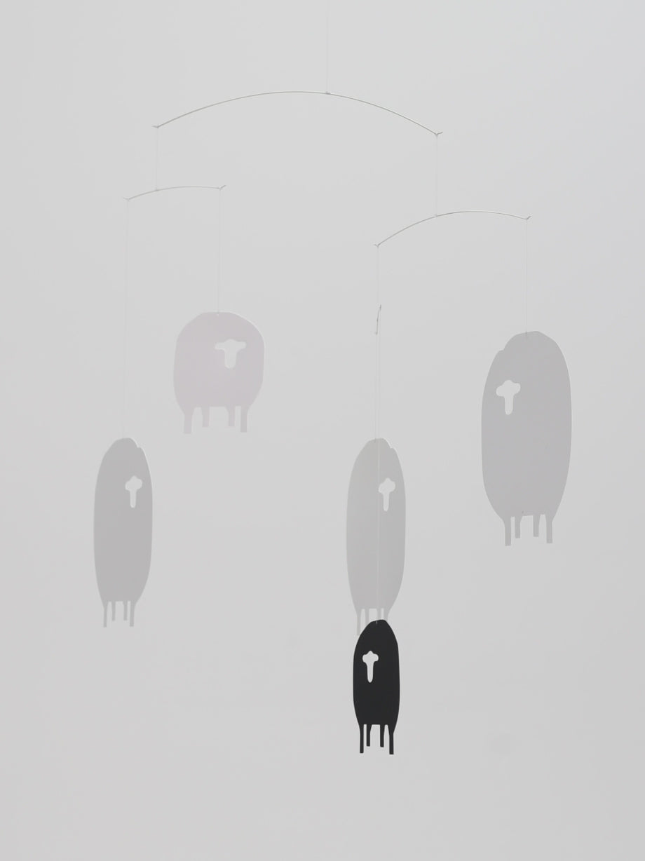 Sheep er et legende ensemble bestående af fire fluffy hvide får og en fremtrædende sort leder. Det er et design, der oprindeligt blev skabt til Museum of Modern Art i New York i 1988. Det tilføjer smuk balance og bevægelse til dit rum. Placer det i stuen, soveværelset, køkkenet, børneværelset eller kontoret.