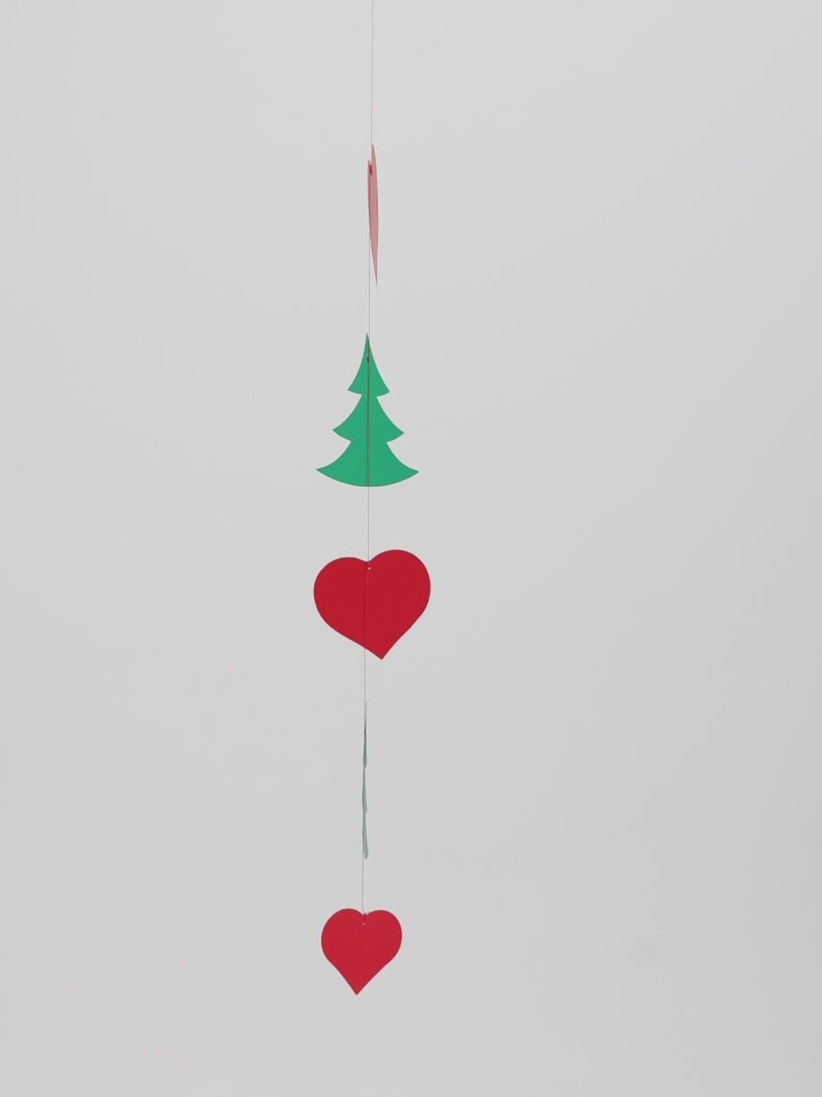 Christmas Ornament, designed by Christian Flensted in 1966, is crafted in colours and shapes that define Christmas, featuring hearts and Christmas trees in green and red. It serves as the perfect decoration to hang in your window, living room, bedroom, kitchen, children's room, or office.