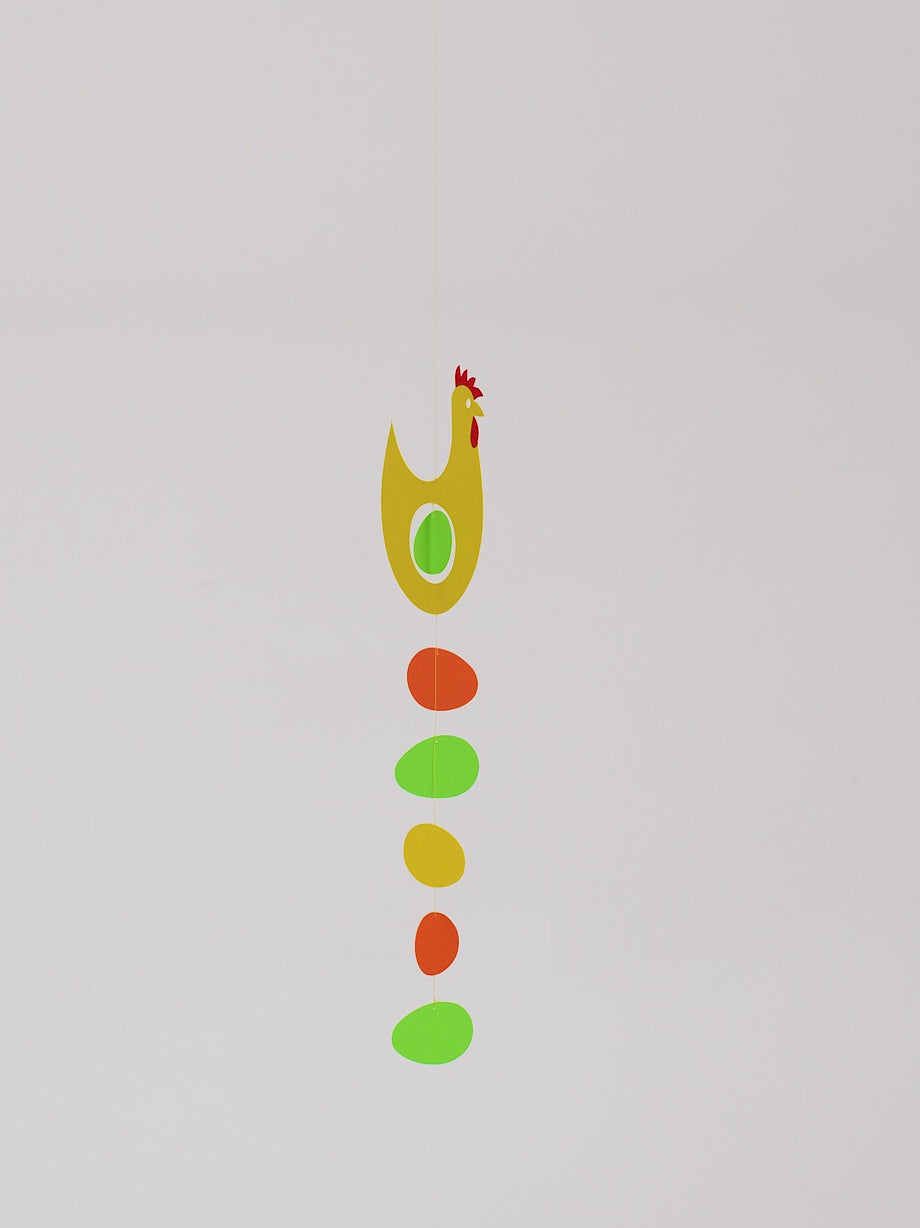 Designed by Christian Flensted in 1967, this design features a simple, graphic design in vibrant colours. It is a charming mobile that adds a delightful touch to any children's room or as an Easter present.