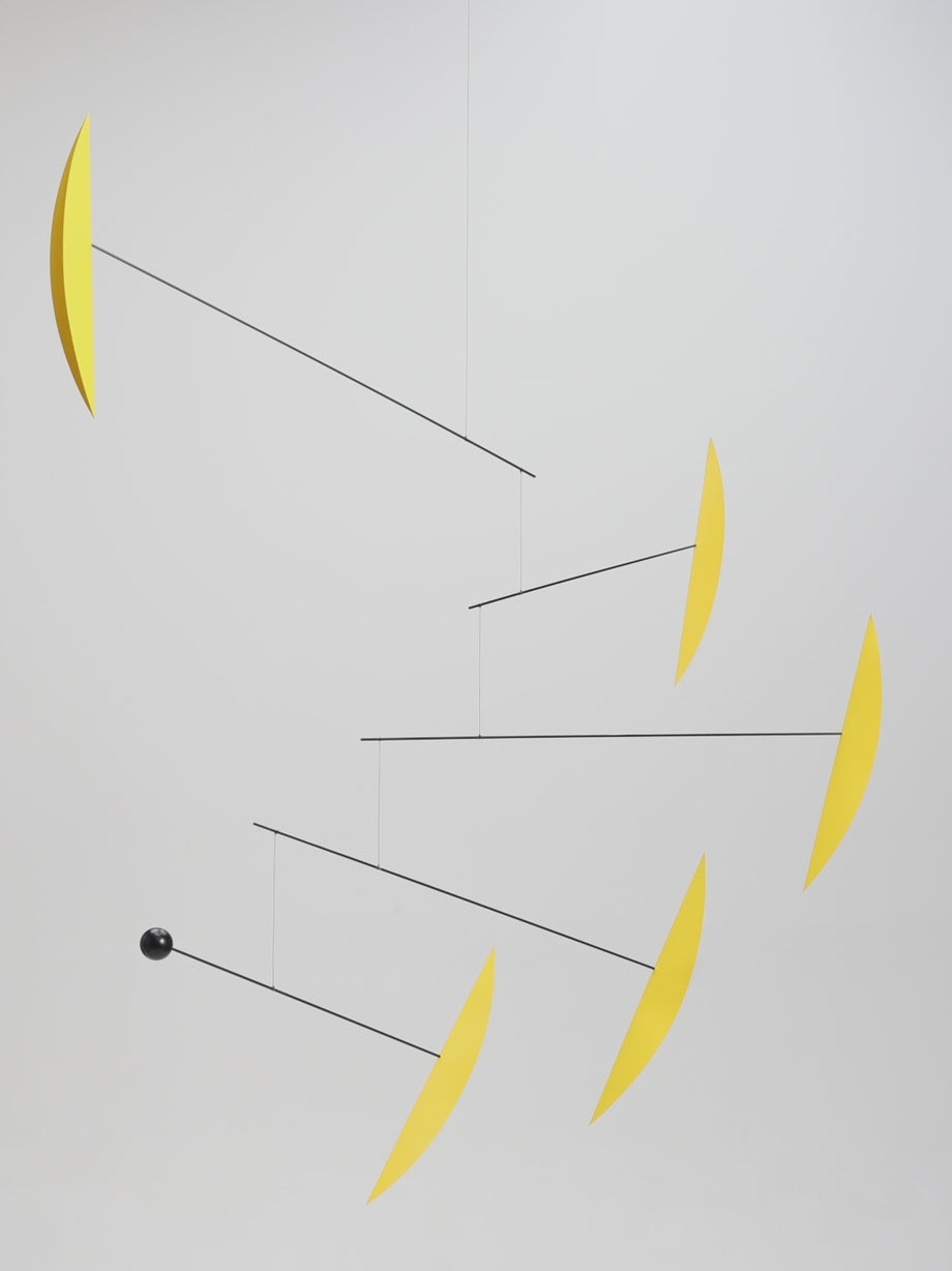 Tango | Yellow creates a visual interplay between the thin black bars and the yellow wings, perfectly capturing the balance and elegance of tango dance. Designed by Ole Flensted in Denmark in 1998, it is the ideal hanging art piece for various areas in the home, including the living room, bedroom, kitchen, and office.